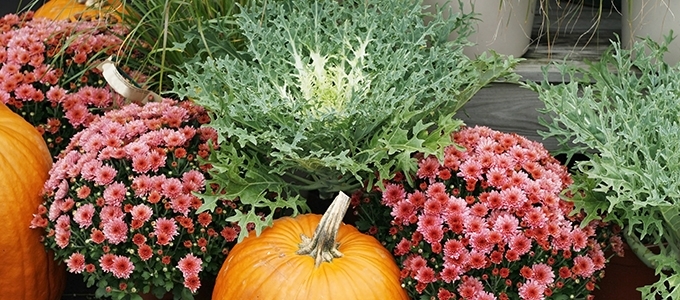 Fall evokes thoughts of crisp, cool air, geese flying overhead, and leaves crunching underfoot. Capture the spirit of autumn with an inviting display of plants near the doorway of your home. Your display can be as simple or fancy as you like, start with a basic potted container, and then add-on decorative accents.
